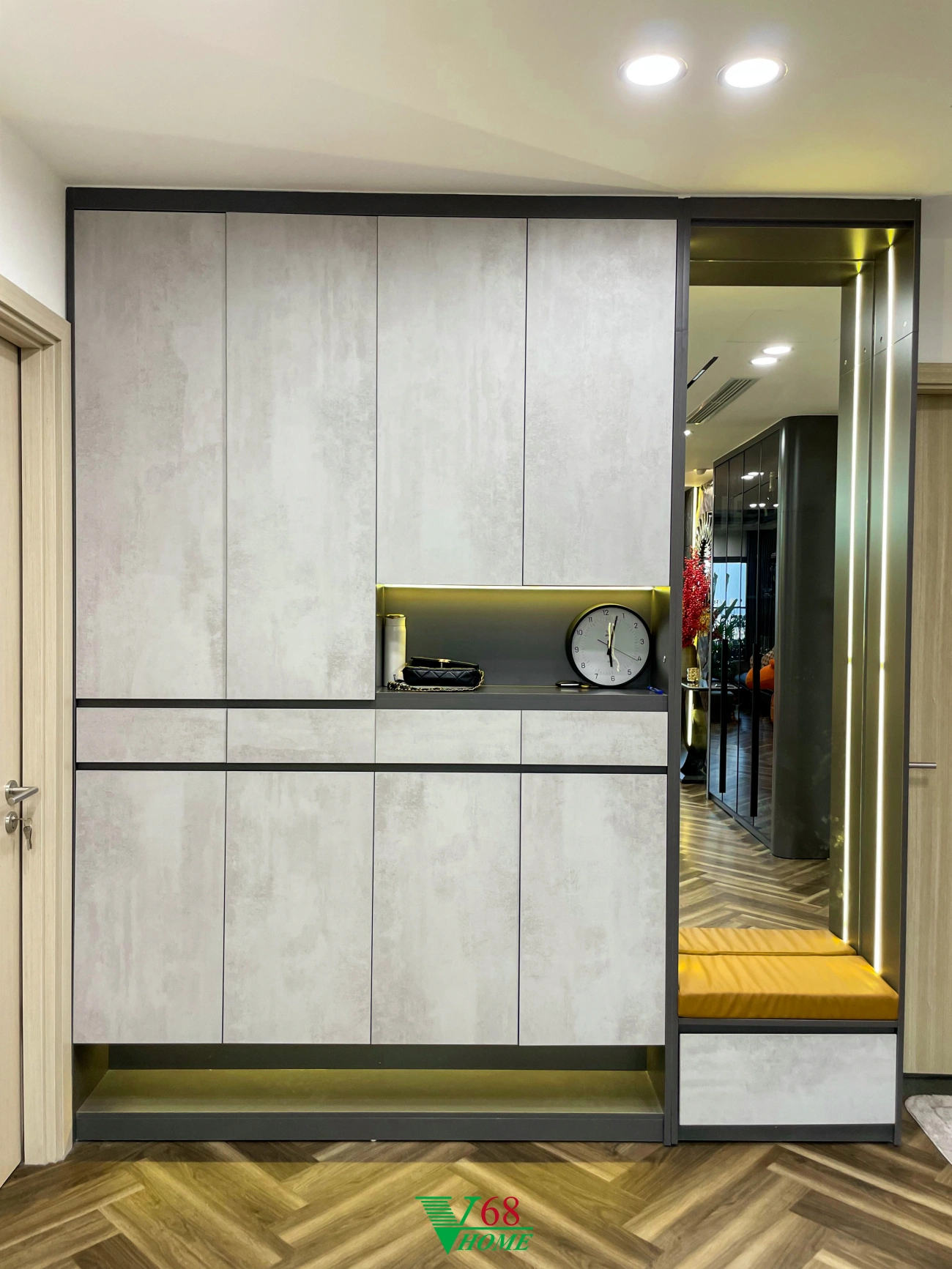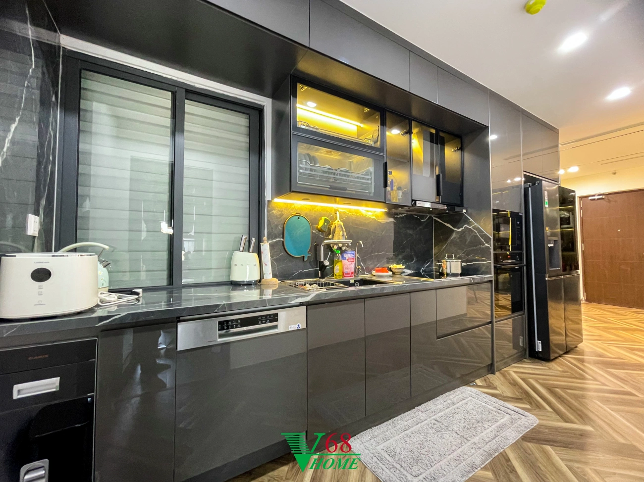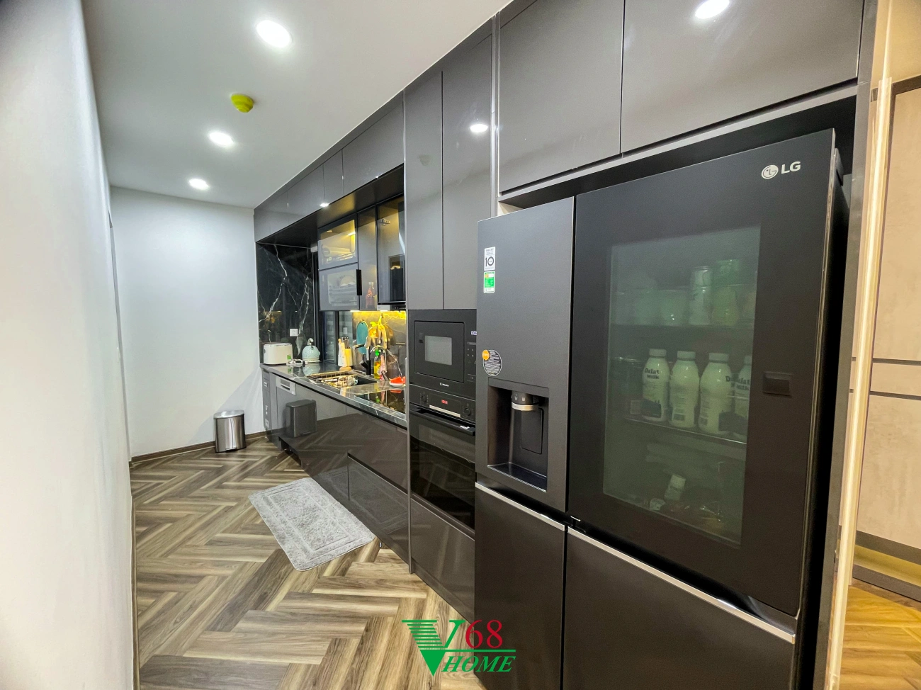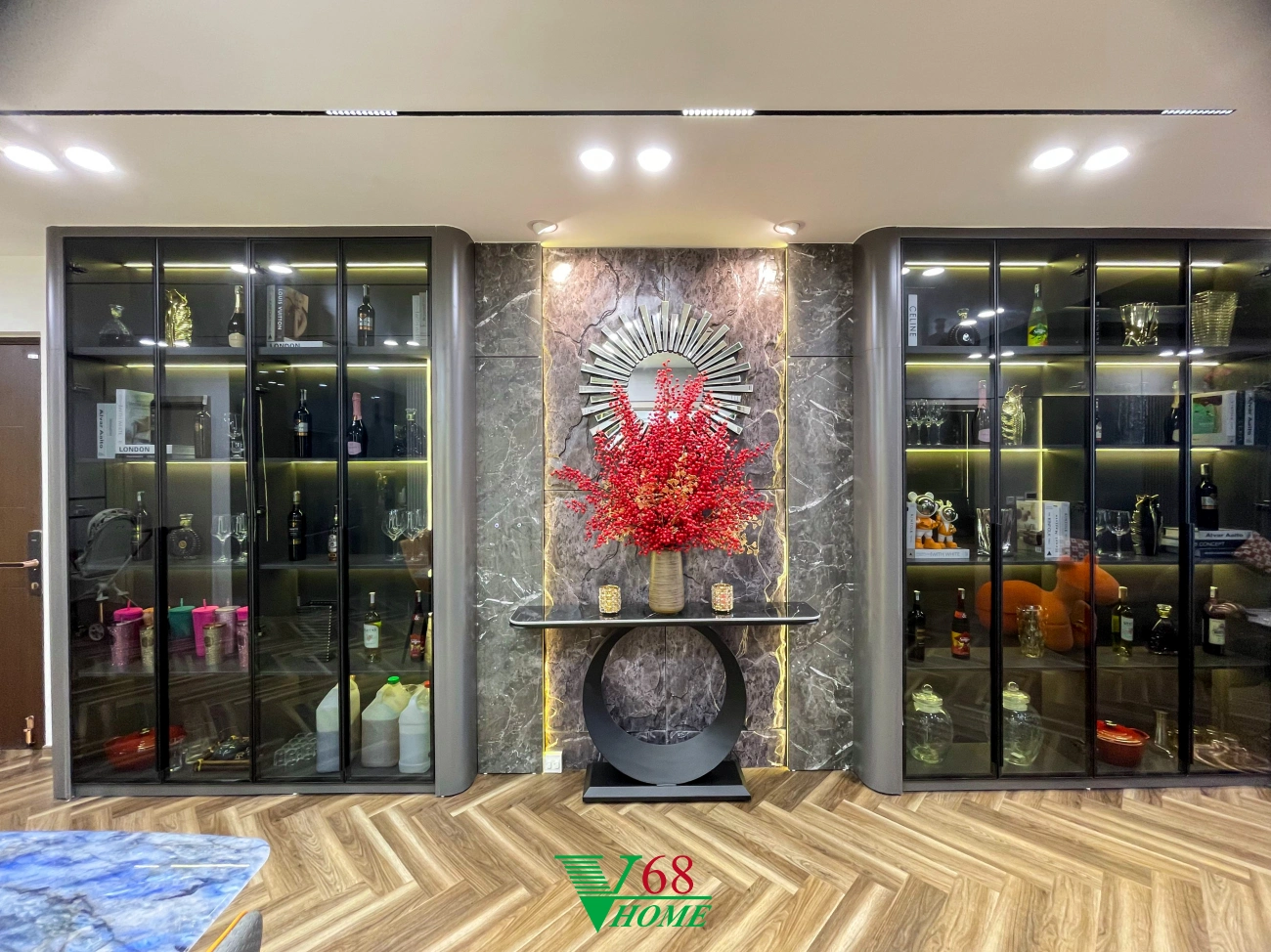 Căn hộ số 10 tại chung cư Feliz Homes, Hoàng Mai, Hà Nội được thiết kế theo phong cách Luxury. Thiết kế sử dụng nhiều loại vật liệu có tính phản chiếu cao như Acrylic, gương, thủy tinh kết hợp với các loại đèn tọa nên một không gian sống sang trọng, đẳng cấp.