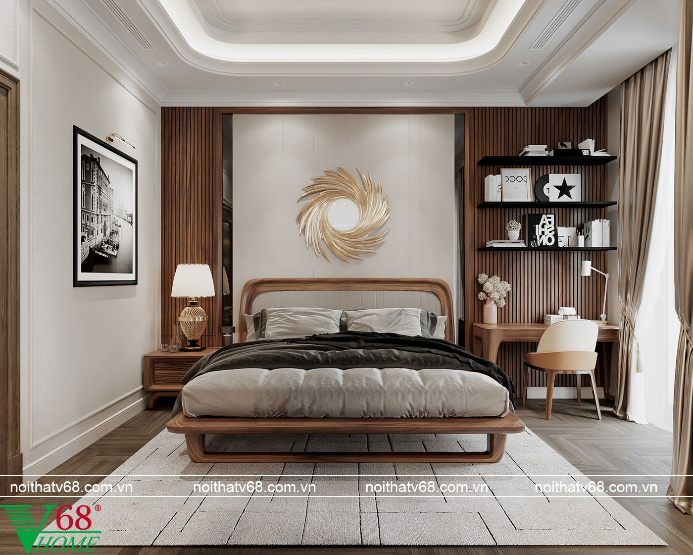 Thiết kế nội thất gỗ óc chó biệt thự thông tầng
