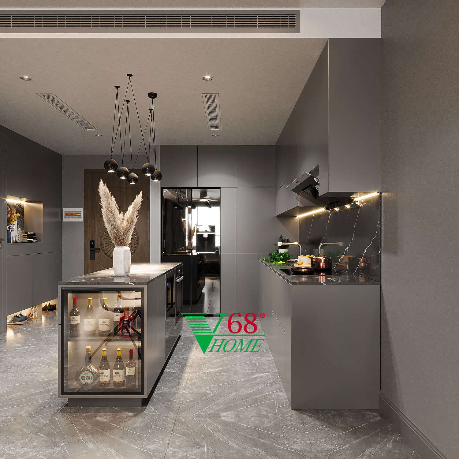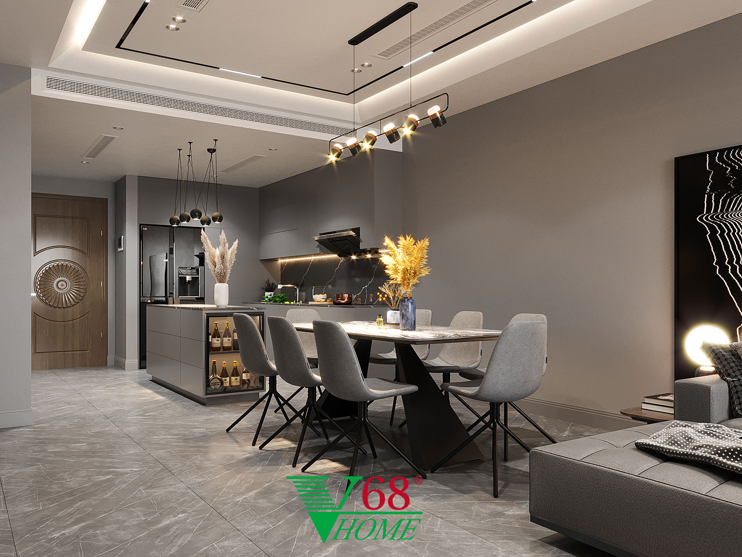 • Quầy bar: Thiết kế quầy bar kết hợp tủ rượu, vừa giúp tiết kiệm diện tích, vừa mang lại sự tiện nghi cho gia chủ.