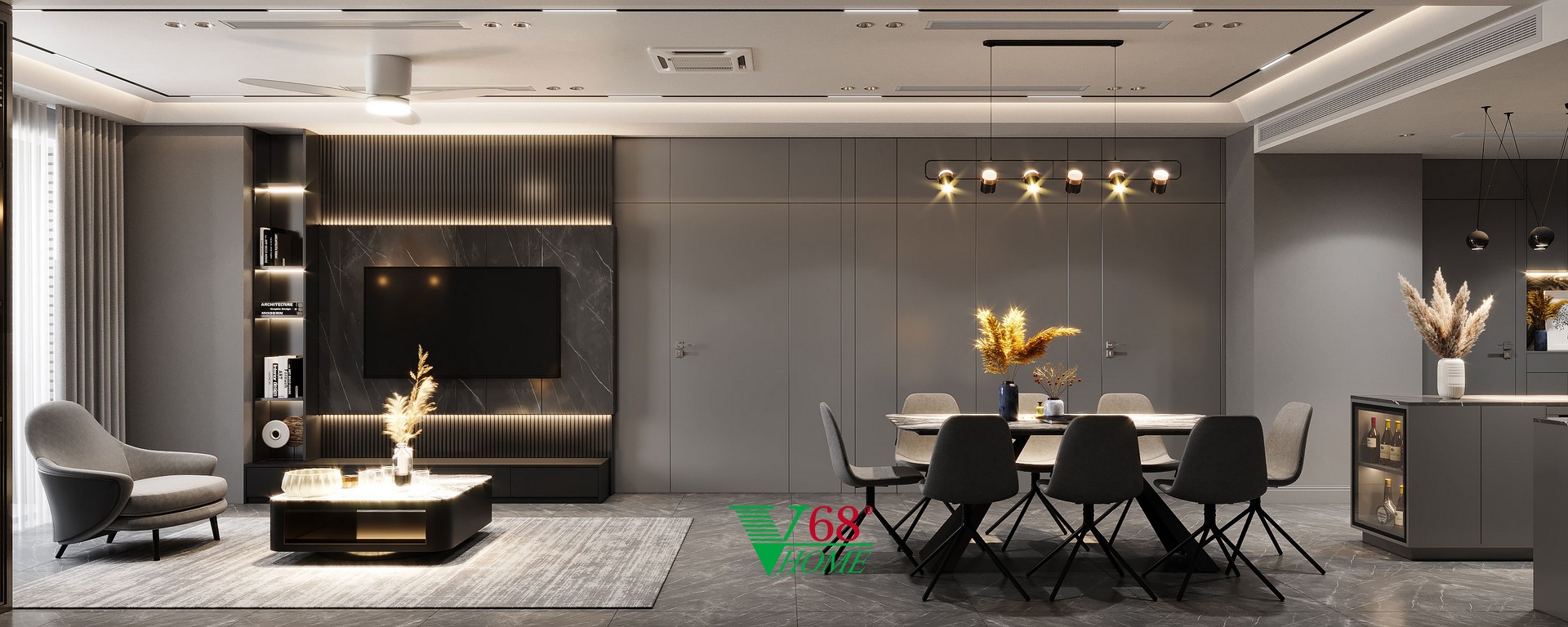 • Tông màu: Sử dụng tông màu ghi sang trọng, tạo cảm giác ấm áp, gần gũi.