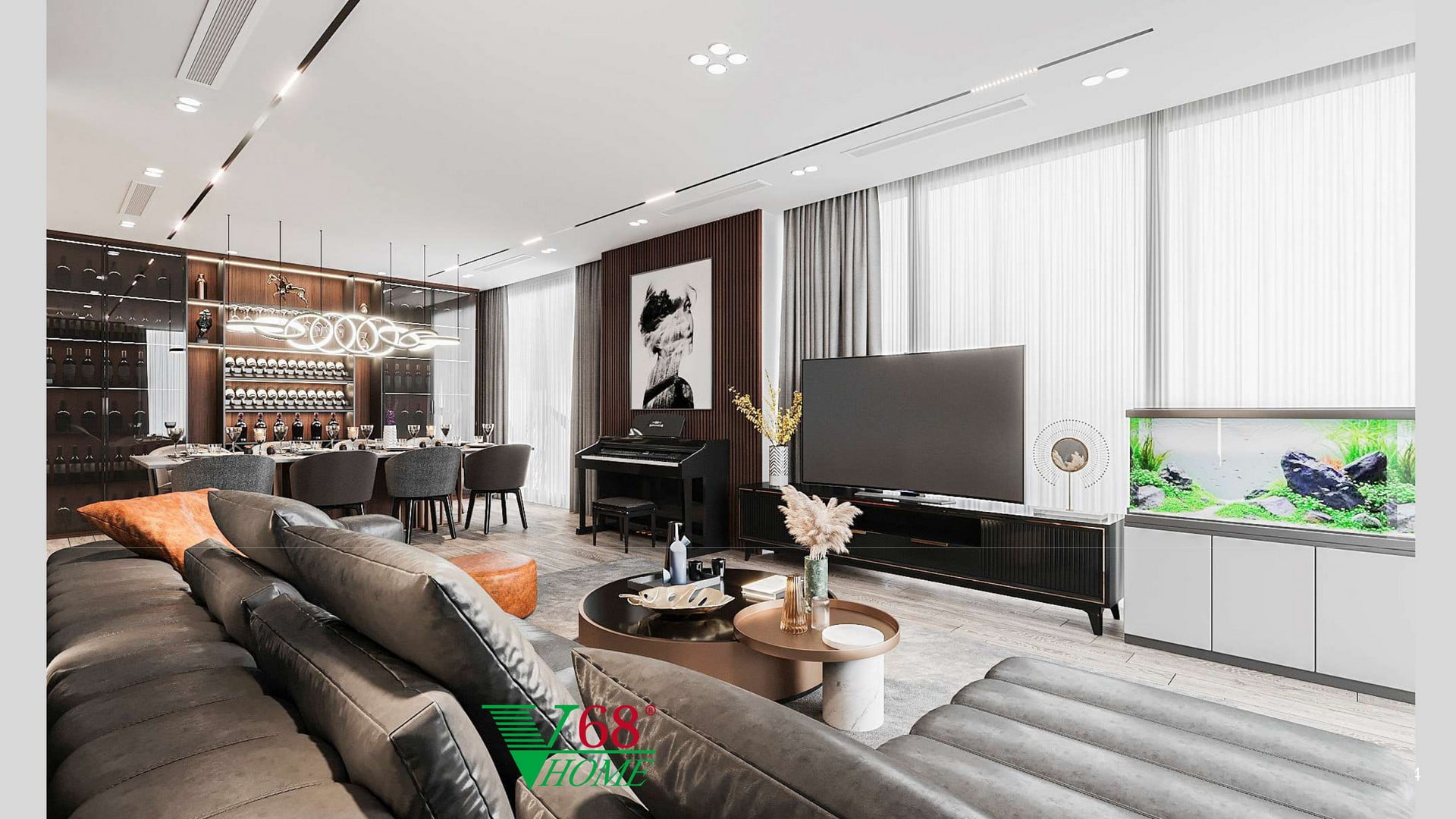 - Tủ rượu lớn: Tăng thêm sự sang trọng và đẳng cấp cho không gian phòng khách.