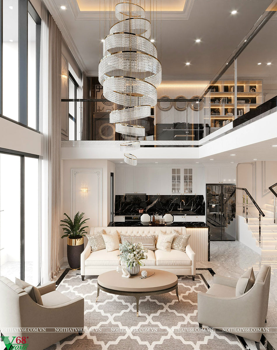 Thiết kế nội thất căn hộ Duplex tân cổ điển