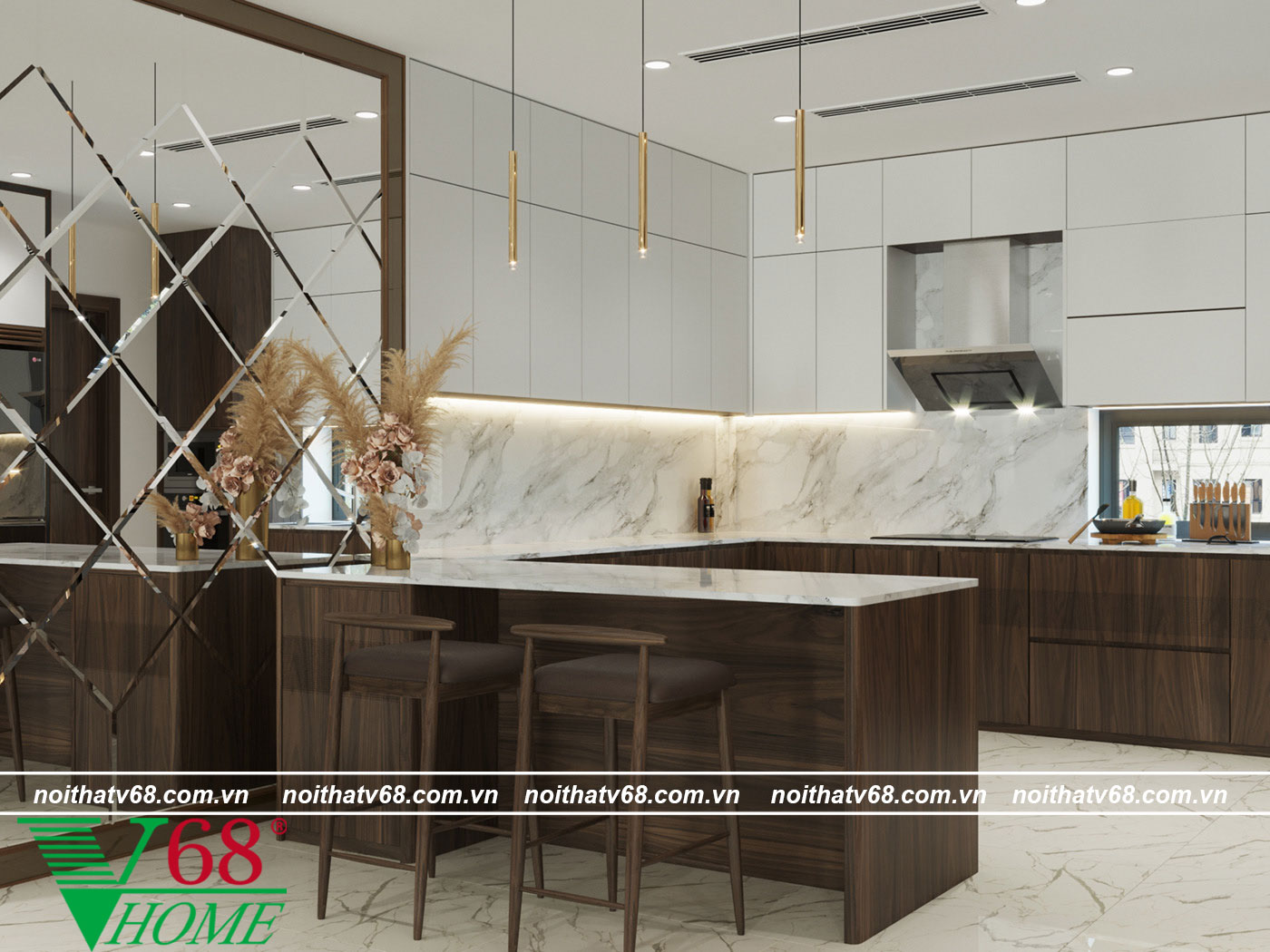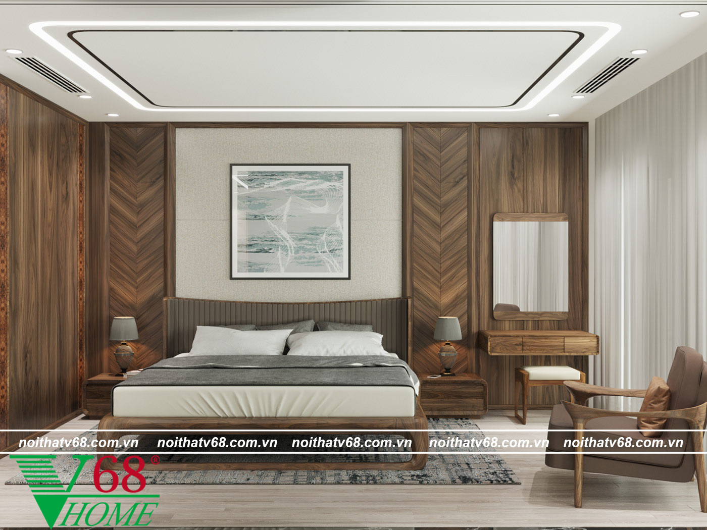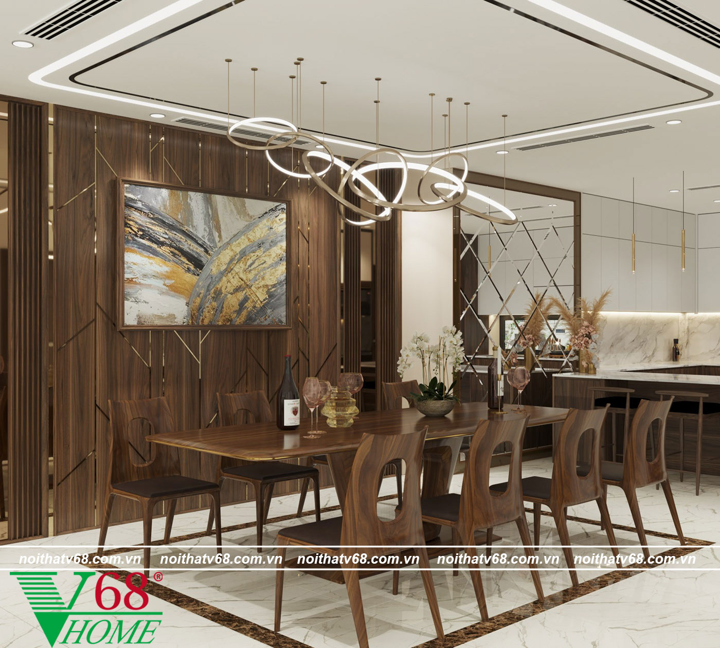 Bàn giao nội thất biệt thự gỗ óc chó sang trọng và đẳng cấp